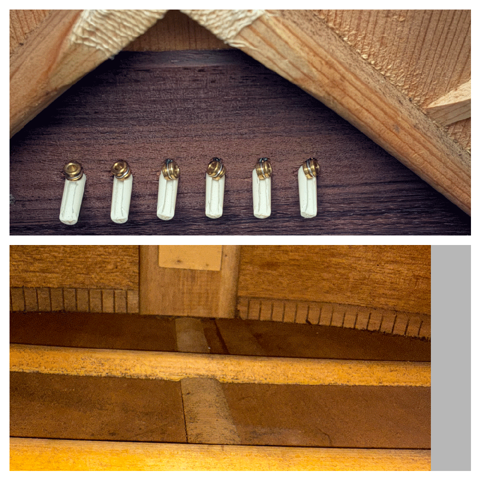 サウンドはスキャロップ・ブレイシングの奥行きのある箱鳴りする低域と弾き込まれた粒立ちの良い軽快な音抜けする中域に、煌びやかで艶やかに響くマホガニー特有の高音域も魅力です。弾き語りの伴奏やキレの良いバッキングなど近年物では味わえない深みのある優しくも切れ味の良い鳴りはオススメです。状態は年代相応の使用感は見られトップのピックガード上部に線傷と小さな打コンが点在しておりますが、パッと見た感じでは目立つダメージは見受けられません。サイドも擦り傷や小さな打コンが見られバックは右下にクラック修理が有り内部からもパッチ処理が施され強度やサウンドには影響は無く擦り傷などのバックル傷などが見られ使用感が強めです。ネック裏はコツコツと打コンが見られますがネックの反りや元起も見受けられず弦高も低くセッティングされ弾きやすく演奏性は問題ありません。フレットはローフレットでも8分目ぐらいは残っており極端な凹みは見られず、ナットはオイル漬けの牛骨にアップグレードされブリッジピンも交換されております。その他、ペグやエンドピン、ピックガードなどはオリジナル・コンディションを保っております。ナット幅約43mm、弦長約645mm弦高も12F6弦で約2.3mm、1弦約1.8mm、サドル中央の余裕も若干ありネックを含めプレイヤビリティも良好です。汎用のハードケース付きです。使用感は有りますが、弾き込まれた鳴りの良いプレイヤーにお勧めのジャパン・ヴィンテージです。中古市場でも滅多に出ない希少モデルです。是非この機会にお試しを頂ければ幸いです。