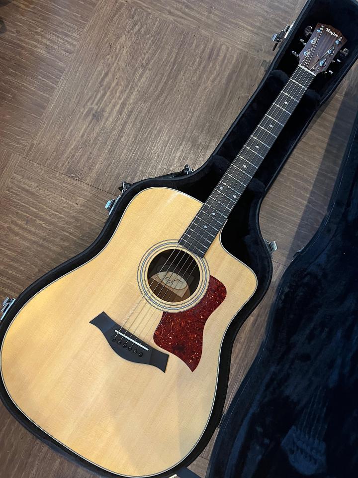 2014年製のテイラー210CE!トップ橋とかスプルース単板、サイドバックはレイヤードコアボディを採用したモデルですが、特にコアらしい濃淡の美しい木目の個体です!