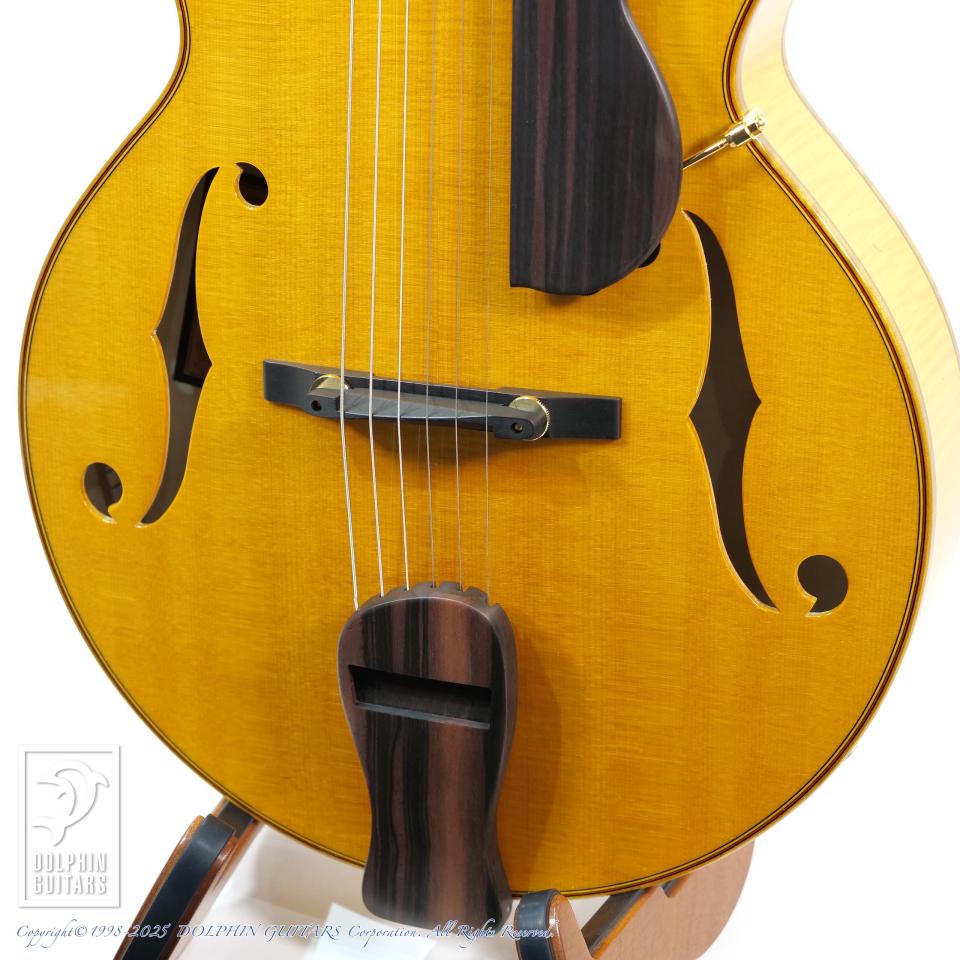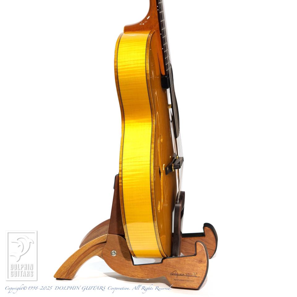 単板のシトカスプルースをトップに使用することによるアコースティックな空気感は絶品。各所のウッドパーツやサウンドの要となるブレーシングの接着・加工は樋口氏本人が行っており、レギュラーラインとは一線を画すモデルとなっております。