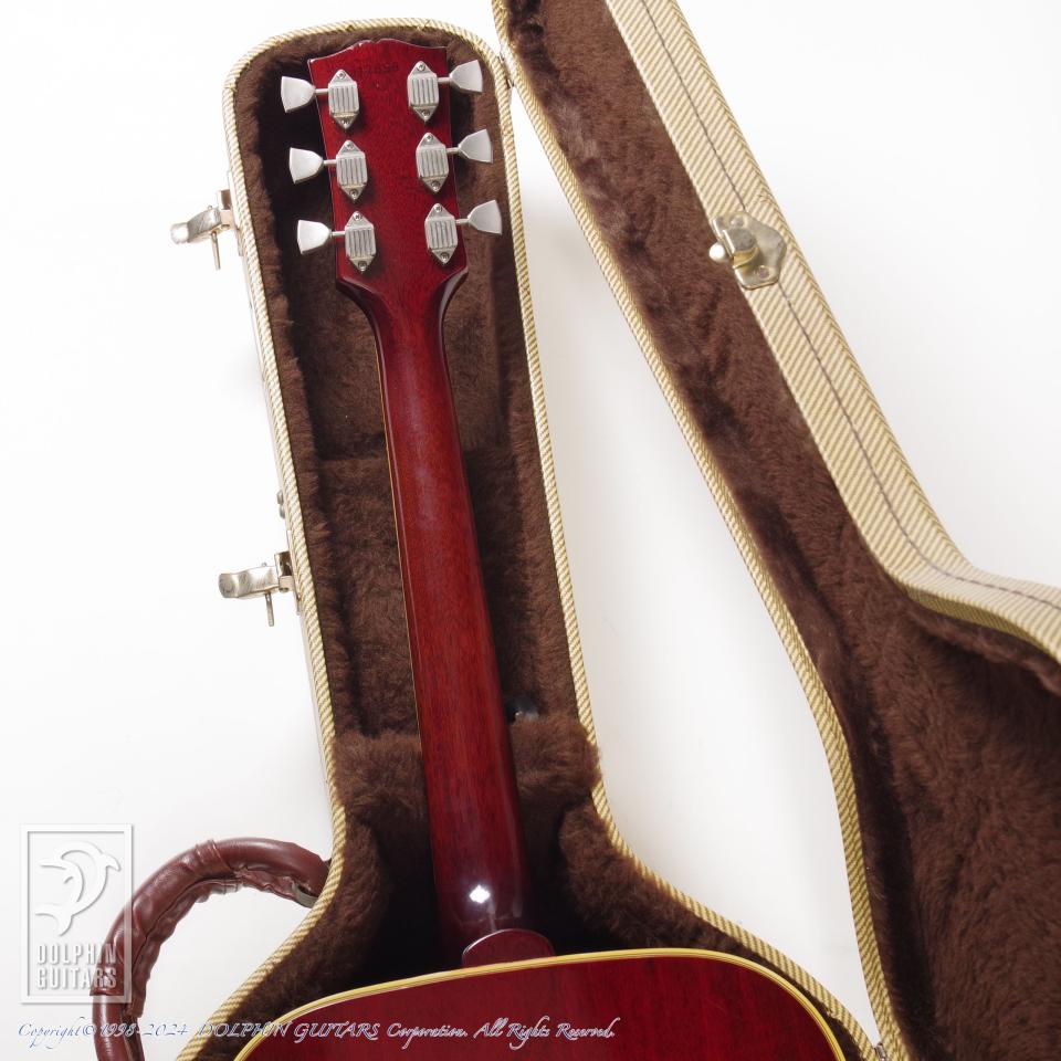 オリジナルフィニッシュのチェリーレッド部分が色濃く残り、ウェザーチェックこそ多く見られますが、この塗装面の状態は素晴らしく、使用頻度の低いヴィンテージギターであります。