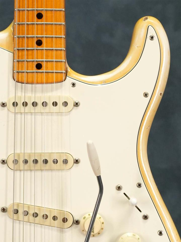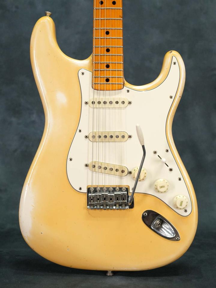 オリジナル度は低いものの軽量なアルダーボディで扱い易く適度に枯れた音色が心地良くプレイヤーにオススメ、オリンピックホワイトの1974年頃製Stratocasterです。
