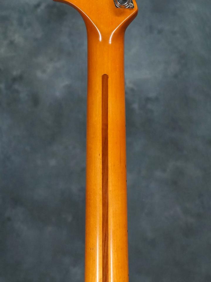 ナット&フレットの交換に伴い指板とネック裏はヘッドトップにカラーを合わせたラッカー塗装でリフィニッシュされており、本来ネックがポリウレタン塗装のためラッカーフィニッシュが色焼けしたヘッドとネックのカラーの違いや手触りの違いが出ますが、半艶消しのオールラッカーになる事で質感の良い手触りになっています。