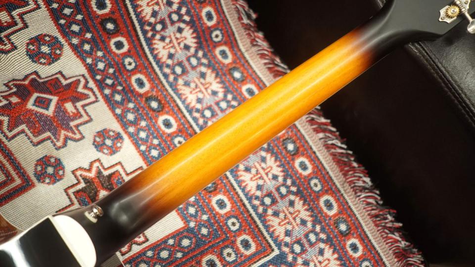 ネック材にはマホガニーを使用し、温かみのあるトーンと安定した演奏性を提供。指板とブリッジには滑らかな手触りと適度な硬さを持つパーフェローがあしらわれており、スムーズなフィンガリングをサポートします。ネックシェイプは快適なCシェイプで、長時間の演奏でも疲れにくい握り心地です。