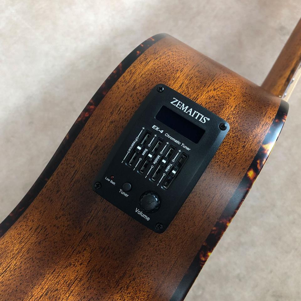 ゼマイティスの伝統的なハート型のサウンドホールの周りに特徴的なハートをちりばめたデザインとマスターシュ・ブリッジのオリジナル・デザインは非常に魅力的です。
