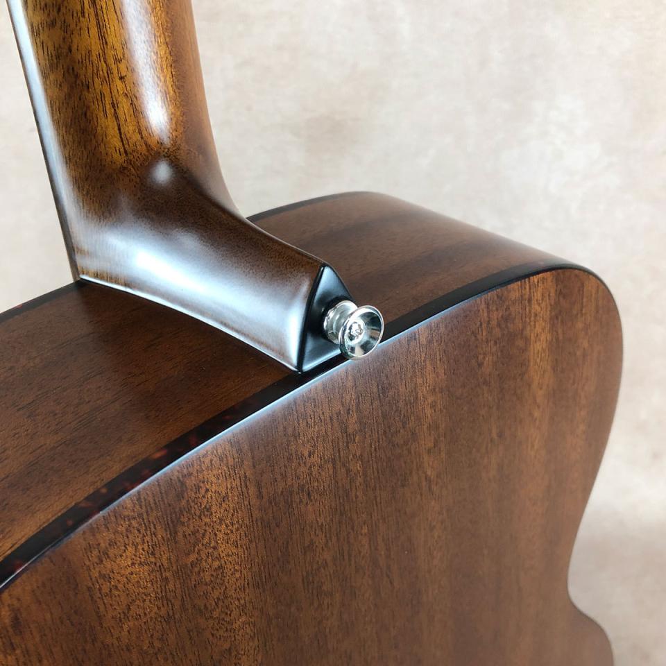 マザー・オブ・パールのダイヤモンド・インレイが輝く特徴的なヘッドストックを持ったネックはマホガニー、フィンガーボードにはローレルを採用し、20フレット仕様の14フレット・ジョイントとなっています。