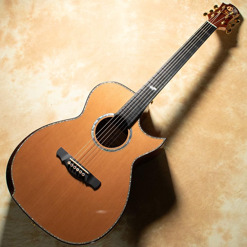トップには落ち着いた風合いと渋いサウンドが魅力的なマスターグレードのシダーを採用し、サイドとバックにはこれまたマスターグレードのココボロを採用。
