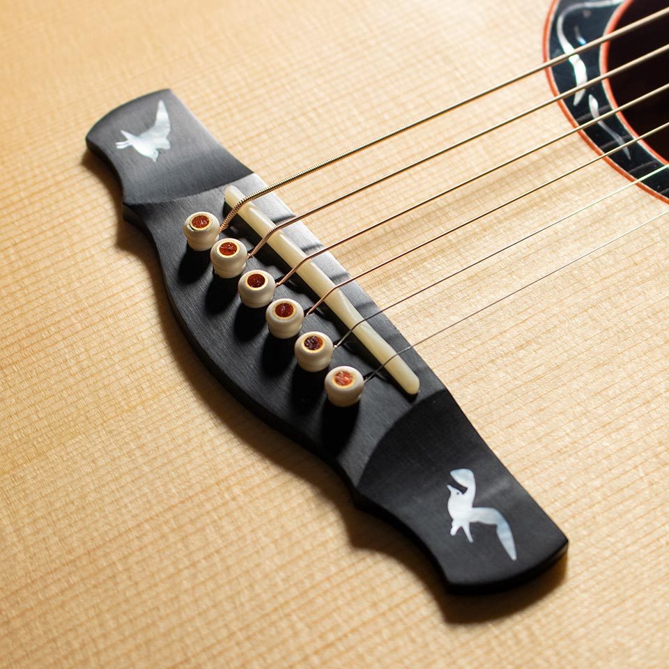 トップ材のヨーロピアンスプルースが醸し出す豊かな板の鳴り感に加え、サイドバックのメイプルも含めた箱の鳴りも抜群です。