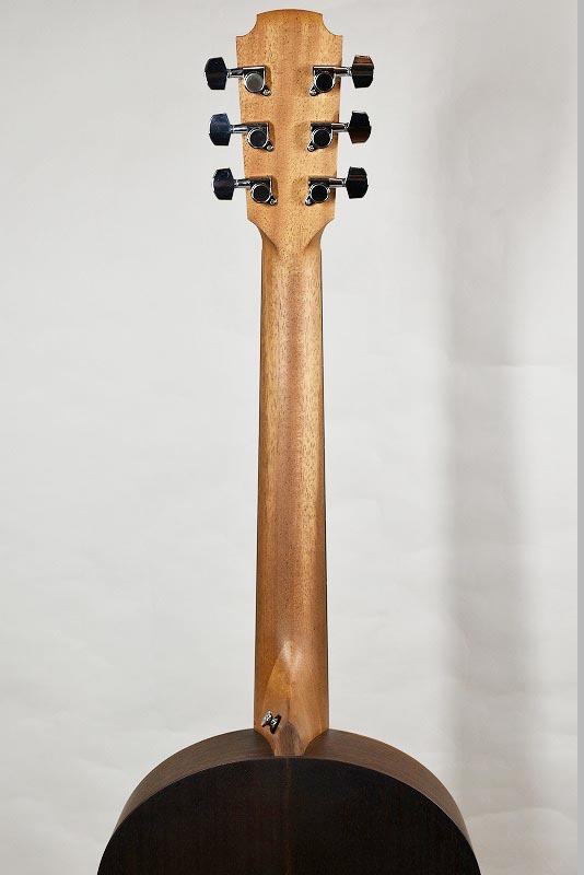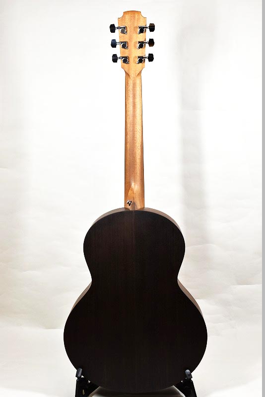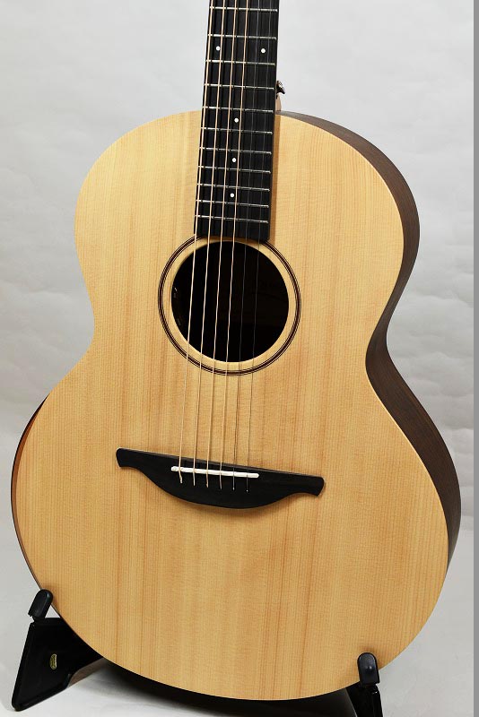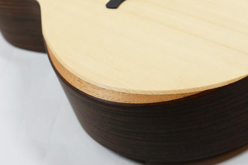 スプルーストップ単板、サントスローズウッドサイド&バック、エボニー指板&ブリッジ、約630㎜スケール、約43.5㎜ネット幅のスペックとなります。