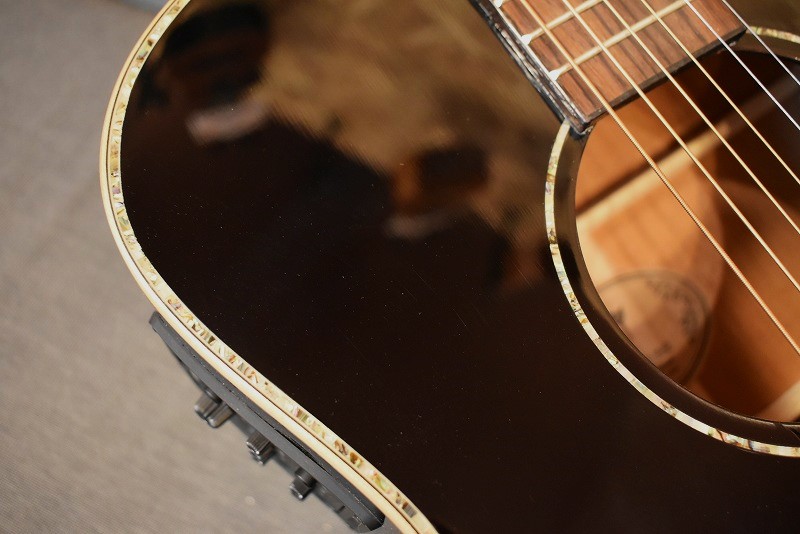 グランド・オーディトリアムボディでピックアップ搭載!アバロンパフリング仕様の黒を基調としたクールなモデル!
