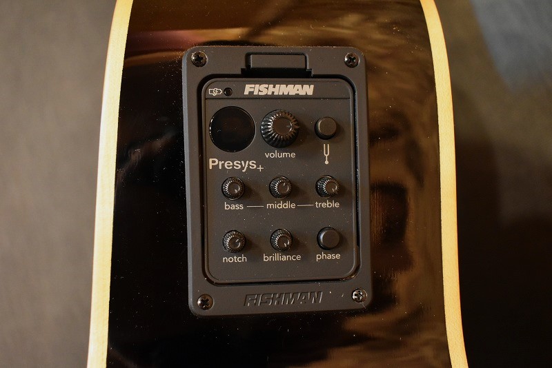 ピックアップにはFishman Presys+が搭載され、サイドのプリアンプ部で簡単に操作可能。