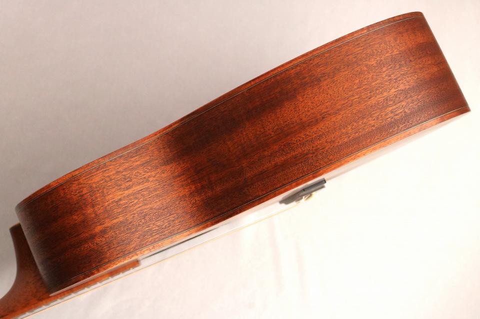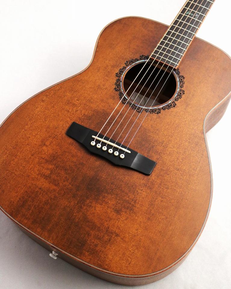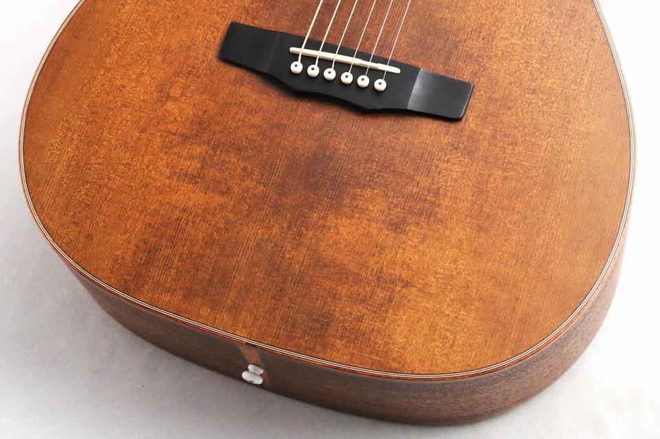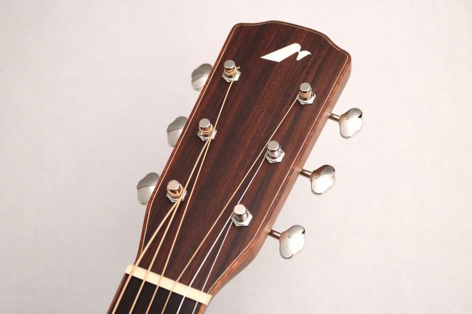 サウンド面に関しては、トップにイングルマンスプルースを採用。通常のスプルースに比べ柔らかい特徴があり、弦振動をより効率よく増幅をしてくれるため軽いタッチでも豊かな音の広がりを感じることが可能です!
