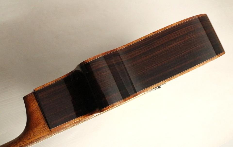 特にこのモデルは、ローズウッドサイドバックの伸びのある美しいサウンドからMartinD-28のような残響感と伸びのある美しい響きが特徴で、フィンガースタイルからストロークでの弾き語りまでバランスよく演奏したいプレイヤーにおススメのモデル。652mmの長めの弦長から軽いタッチでも響きの反応が良く、変則チューニングでの演奏においても安定感のある響きが得られます。