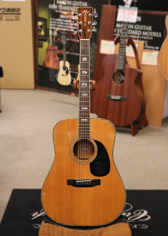 手の込んだハンドメイドのアコースティックギターを低価格で提供をしており1970年以降代初めて手にしたアコースティックギターはMorrisであったり、ご両親から譲り受けたギターがMorrisだった。という方も多いかと思います。