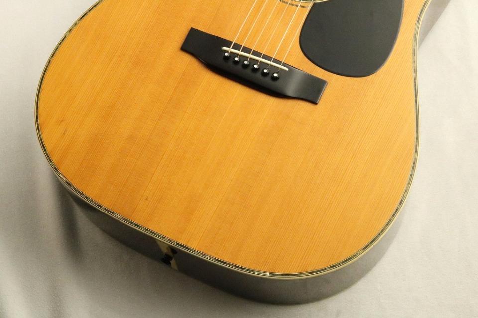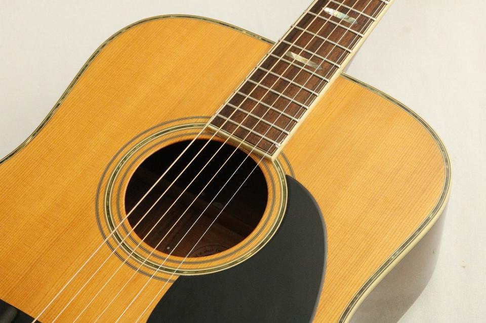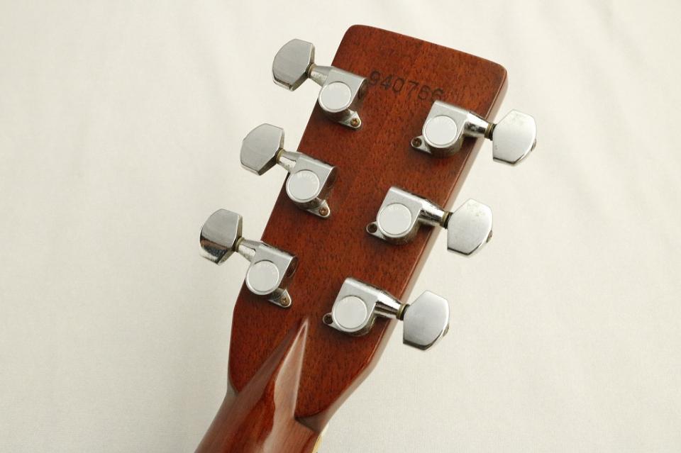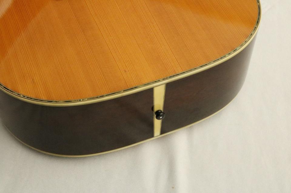 ボディ全体に小傷や塗装部のみの僅かな凹み、金属パーツのくすみはございますが、年代を考慮すると状態良好と言える個体です。ネックは概ねまっすぐで6弦12フレット上約3.2mm、1弦12フレット上約2.2、サドル高は6弦下2.1mm、1弦下1.5mm。ネックは概ねまっ直ぐですが仕込み角度により弦高は高め、販売当時から高めの現行であったことが推測されます。サドルの残りも僅かですので今後弦高を下げる調整は難しいかと思います。ローポジションでコードストロークをメインに演奏される方へおススメの一本です!