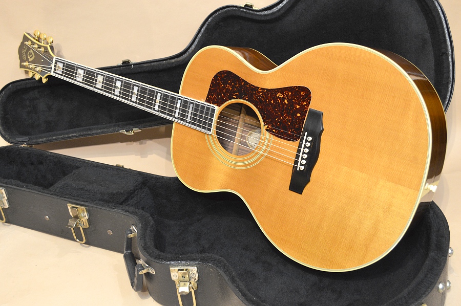 マーチン、ギブソンと並びアメリカの三大アコースティック・ギター・メーカーとして名高いギルド。テイラー・ギターなどの台頭により、最近ではすっかり影の薄いメーカーになってしまった感がありますが、50年代~80年代のミュージック・シーンを支えた伝統のギター・メーカーです。今回入荷はフェンダー社に買収される直前の93年製のGF-55。伝統のウエスタレー工場で作られた1本です!