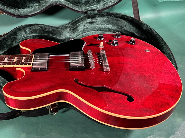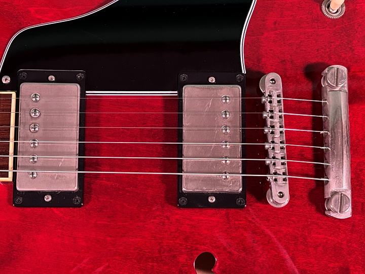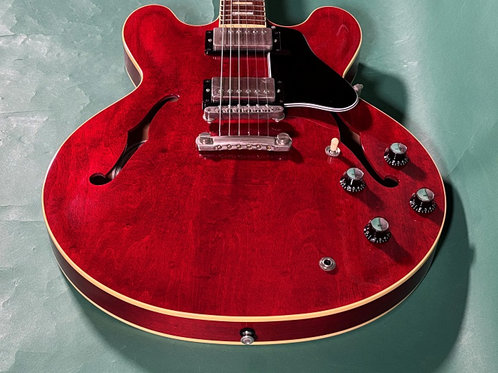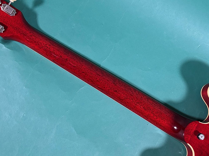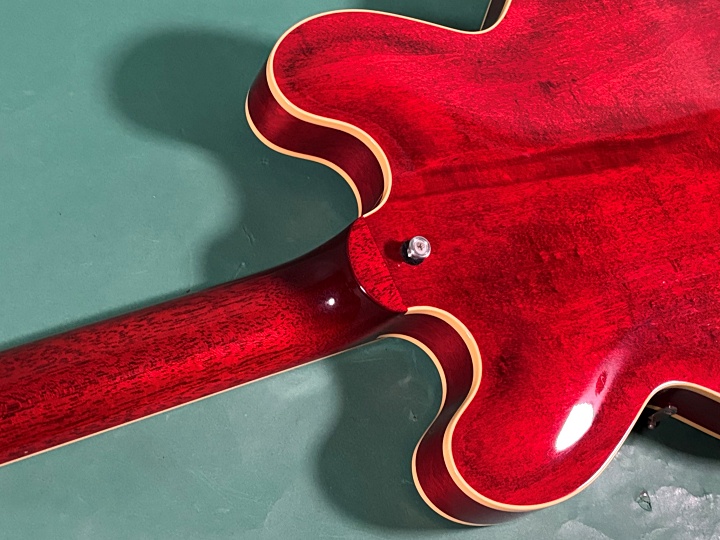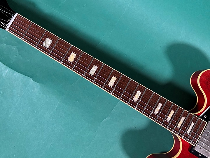 今回入荷のMES-1-BP/NJは、スモールガード、ブロックポジションマークと60年代中期のGIBSON ES-335を踏襲したモデルになります。