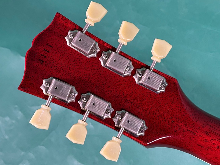 ネックはまっすぐでロッドも余裕あります。フレットは8割程度残っており演奏性も良好です。ナット幅43㎜、スケールは624㎜、310Rでネックグリップは太すぎず、細すぎず扱いやすい形状になっています。