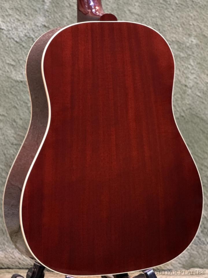 ギブソン・オリジナルシェイプの『ラウンドショルダー』と呼ばれる、なで肩のボディのトップには『シトカ・スプルース』、主にアラスカ産を使用し、サイド&バックには純種の『ジェニュイン・マホガニー』中南米エリアの主にグアテマラン産を使用しています。ネック材も同様に『ジェニュイン・マホガニー』、指板&ブリッジには『インディアン・ローズウッド』を使用し、発売当初のマテリアルを限りなく継承しています。