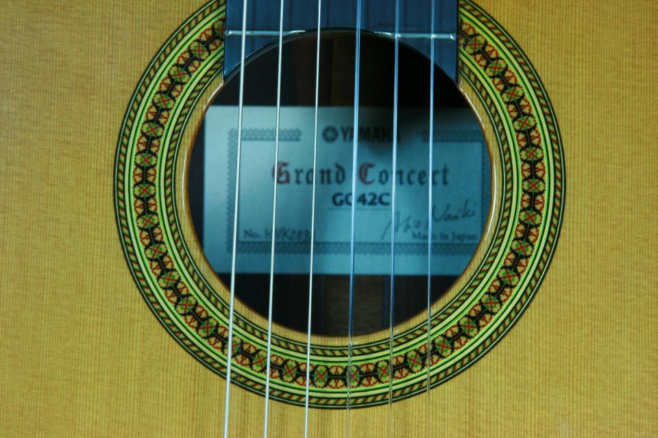 ヤマハの『GC(グランド・コンサート)』シリーズは、全て日本製です。このGC-42CはHANDCRAFTED(ハンドクラフト)です。