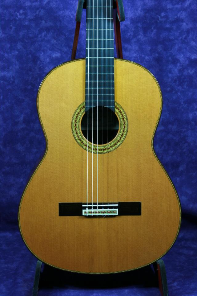 全体的に音の芯に核があって張りがあり、メリハリの効いたハッキリとした明確な音のギターです。低音域は骨太で押し出しが強く、高音域は明るい音色で大きな音量で、ポーンポーンと大変良く鳴っています。