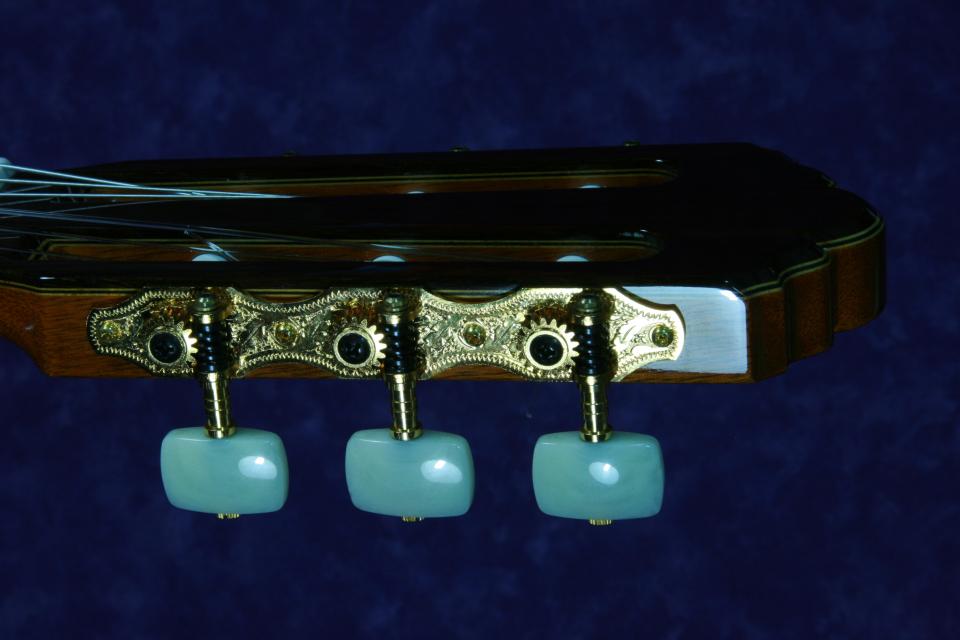 ブリッジとヘッドの飾り板:インディアンローズウッドです。