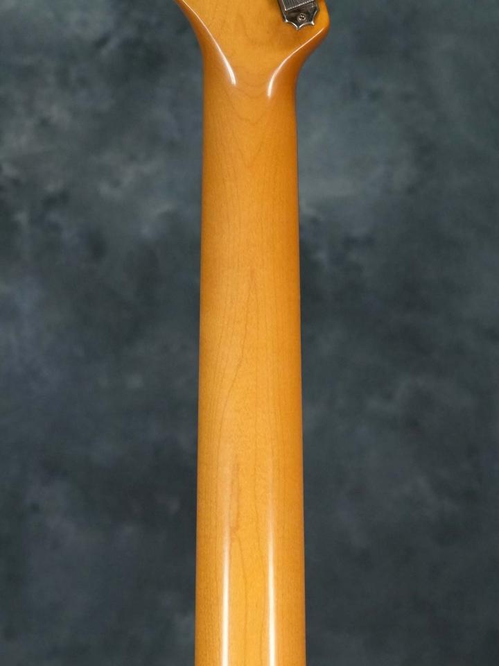 アルダーボディ、メイプルネック、フラットラミネイト(スラブ貼り)のローズウッド指板、クルーソンペグ、カラハム・シンクロナイズドトレモロ・ピックアップはJimmy Wallaceオリジナルの60s Hot-Setを搭載し、5-Wayセレクター+1-Volume/フロントTone/センターToneのコントロール。