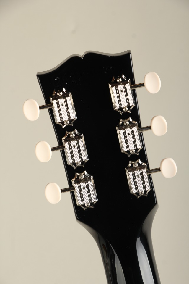 フラットトップのマホガニーボディ、セットネックで接合された適度な握りごたえのあるVintage 50sプロファイルのマホガニーネックにローズウッド指板といった伝統的なウッドマテリアルを使用。こちらも伝統的なギブソンのシングルコイルピックアップであるソープバーのP90ピックアップを2基搭載。ハードウェア類にはホワイトボタンのヴィンテージデラックス、ラップアラウンドブリッジが搭載されております。