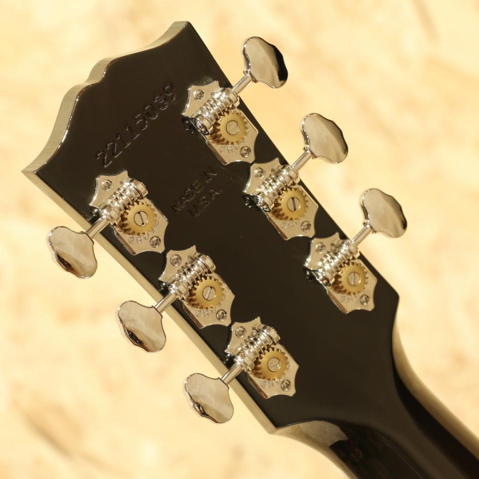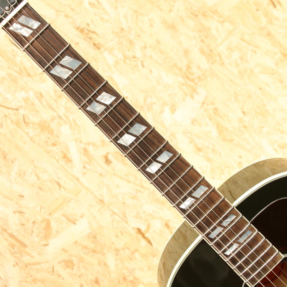 ギブソンラウンドショルダーの元祖である"Jumbo"から枝分かれしたAdvanced Jumboの後継となったモデルのうちの一つであり、現在ではもっともポピュラーなJ-45の上位機種という位置づけとなっているギター”サザンジャンボ”。本器は2020年よりリリースされたアコースティックオリジナルシリーズの”Southern Jumbo Original”。シトカスプルーストップ、マホガニーサイド&バック、マホガニーネック、ローズウッド指板&アッパーベリーブリッジ、グローバーオープンバックペグ、ヘッドクラウンインレイ、ダブルパラレログラム指板インレイ、ベッコウ柄ラージピックガード、スキャロップド・エックスブレイシング、L.R.Baggs Element VTCピックアップ標準装備。トラディショナルなスタイル、40年代中期から製造が始まりそのクラシカルな風合いを現代に蘇らせた本モデル。当初の仕様であるオープンバックペグ、サザンジャンボと言えばでよくイメージされる50年代後半からのラージピックガード、上位機種の証であるクラウンヘッドインレイやダブルパラレログラム指板インレイ。古き良きスタイルを踏襲して製造されています。ネック等の演奏面では薄く握りやすい現代的なスタイルのネックを採用。指板エッジを丸めて握り込みやすくしたグリップなどは以前から引き続き採用されており、握り込んだ演奏スタイルから細やかなフレージングでの演奏まで対応できるオールマイティさを獲得しています。ギブソンアコースティックの醍醐味といえるファットかつボリューミーなサウンド。爆発力を感じられるふくよかな響き、空気感を伴った抱擁感のあるトーン、J45とはやや異なった艶やかな響きを堪能することが出来ます。演奏スタイルを問うことはありませんが、やはり歌モノで活躍してくれることの多そうなサウンド。ステージングを支える相棒として申し分のない1本です。搭載のエレメントVTCピックアップは最新の1ボリューム/1トーン仕様。シンプルなコントローラーは操作に迷う事も少なく、ナチュラルでパワフルなサウンドを出力できます。サザンジャンボは著名アーティストの使用でも有名、ゴージャスでありながら気取っていないそのデザインからギブソンフラットトップの中でも確固たる人気を誇るモデル、是非お手元でご体感下さいませ。オリジナルハードケースが付属します。