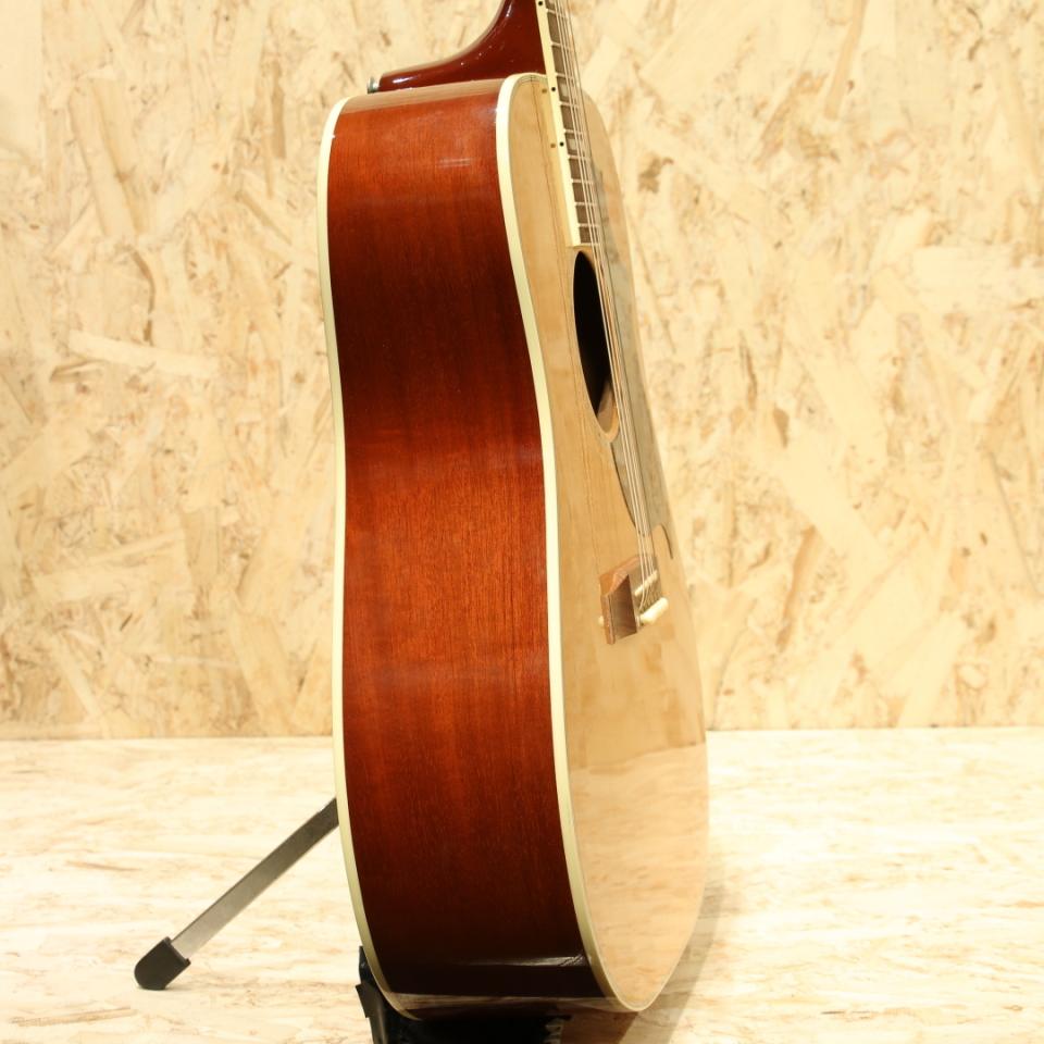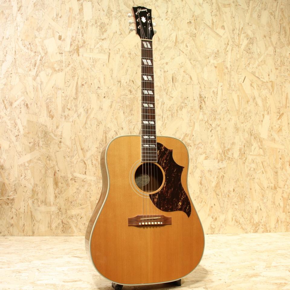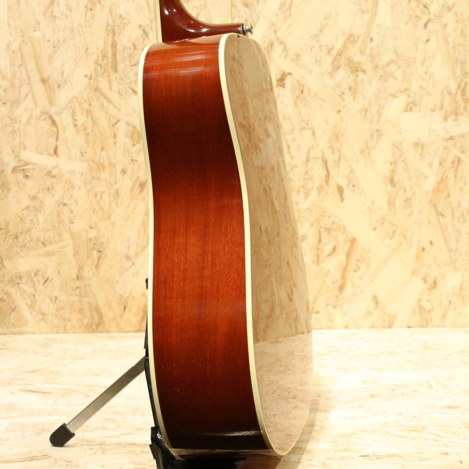 【税込価格3万円以上の商品 送料無料!! ※北海道は3,300円・沖縄は5,500円となります】米ミズーリ州生まれ、幼少期から音楽に馴染み17歳から音楽活動を開始した”シェリル・クロウ”。グラミー賞の受賞も数多く常連ともなった世界的なシンガ―ソングライターです。本器は彼女が持つ1962年製カントリーウエスタンを基にしたシグネチャーモデル。2005年製のUSED品です。スプルーストップ、マホガニーサイド&バック、マホガニーネック、ローズウッド指板&ブリッジ、クルーソン白ボタン3連ペグ、パールヘッドロゴ、クラウンヘッドインレイ、ダブルラインロゼッタ、ダブルパラレログラム指板インレイ、3ポインテッドラージピックガード、スキャロップドXブレイシング、Fishman Natural Iピックアップシステム搭載。元々カントリーウェスタンはSouthern Jumboのナチュラルカラーとして、1954年にSJN(Southern Jumbo Natural)のネームで販売が開始されました。翌年からカントリーウェスタンの名前が付けられ、その後何度かSJNとカントリーウェスタンの名前を行き来する事となります。1962-1963年頃からはラウンドショルダーからスクエアショルダーへと変更され、Hummingbirdのような3ポイントのエッジが立ったピックガードへと変わります。個性的なネームからややマイナーなモデルですが、J-50の上位機種とも言える立ち位置になります。シェリルクロウはこのモデルを気に入って愛用しており、これまで何度もシグネチャーモデルが限定にて発売されてきました。2005年製はFishman製ピックアップシステムを搭載、ボディ内ラベルは彼女の直筆サインが入った仕様です。ラベルの形状やロープの柄が入ったデザインも60年代当時と近しく、良い風合いで再現されています。ヘッドのクラウンインレイや指板のダブルパラレログラムインレイも上位機種の証。オープンなサウンド、乾いたトーン、そしてパンチ感を持ったGIBSONらしいサウンド。中域にピークのあるトーンと纏まりの良い響き方が魅力的です。ボリューム感もあり、アタック音のパーカッシブさが心地よいサウンド。J-45やSouthern Jumboのようなラウンドショルダーと比べるとやや低音のコンプ感が抑えられ、ヘッドルームの余裕を感じさせます。フィンガーで素朴に弾きながら歌うも良いでしょう。シェリル・クロウファンでなくとも満足して使えるであろうディティールの高さとサウンド。ピックアップにはFishman Natural Iピックアップシステムを搭載。電池を使ったアクティブのシステム、エンドジャックと一体化したプリアンプによって信号を大きくして出力します。コントローラーは無く繋ぐだけですぐ演奏出来る非常にシンプルな操作性。アンダーサドルピエゾ特有の音の芯を捉えた輪郭感の響き、バンドの中でも弾き語りでも使えるオールマイティさを持ちます。全体的な薄い擦れキズ、ボディバック面下部に僅か見られる当てキズや薄いピックガードに弾きキズ等見られるものの使用感はさほど感じられない個体。ネック周りの演奏性も整えられており、トラスロッド残りも充分、サドル残も残されています。調整幅があり今後もガツガツ使っていけるであろう1本。ややマニアックな時期のカントリーウェスタン、この仕様で製作されたのはシェリル・クロウの人気によるものが大きいでしょう。稀に入荷しては比較的早くに動いていくモデルです。お探しだった方は是非お見逃しなく。