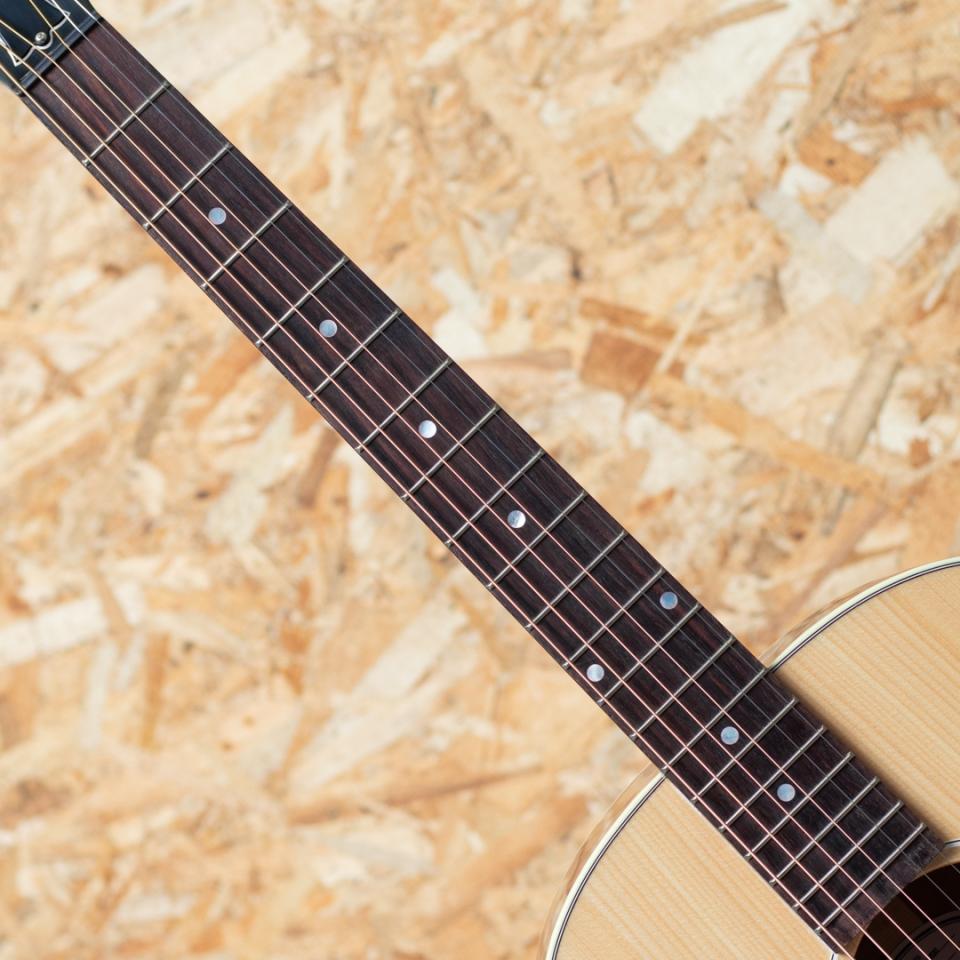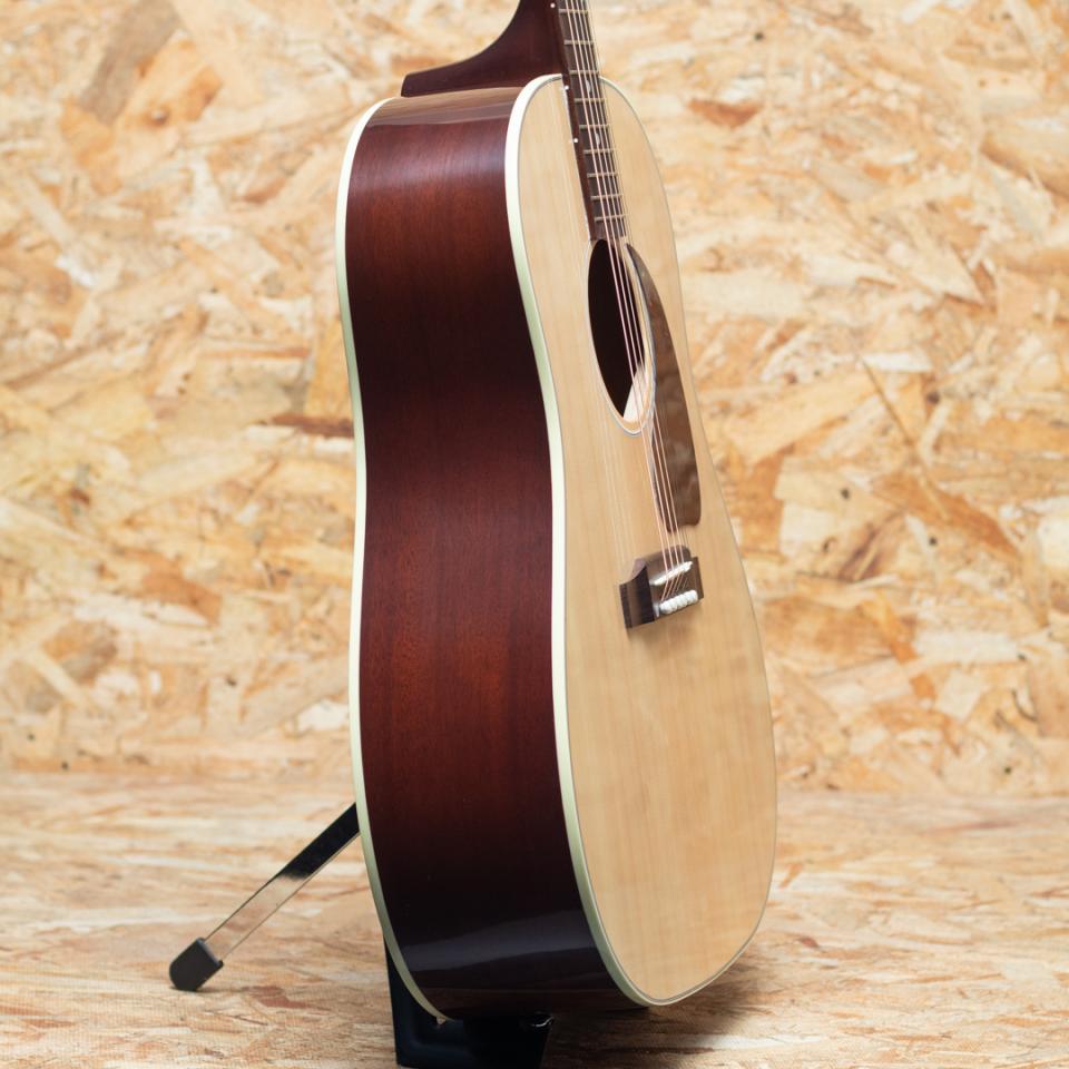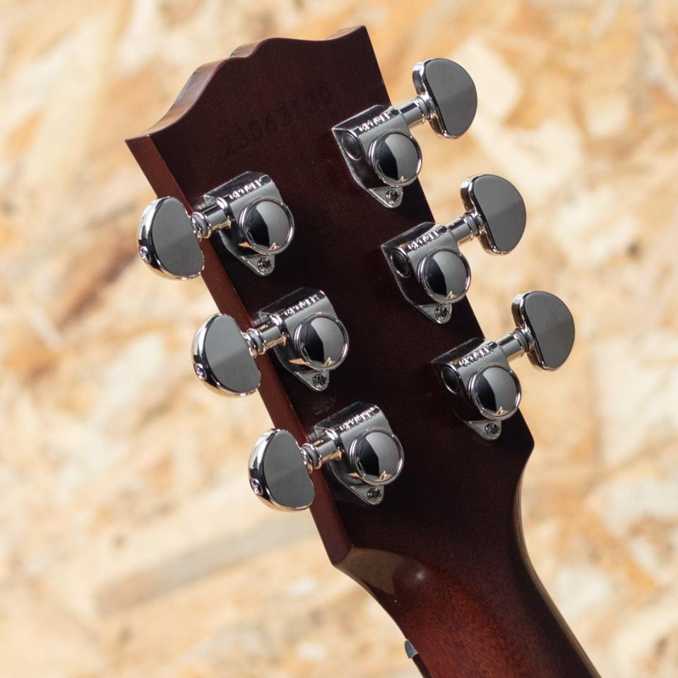 "The Workhorse(頼りになる馬車馬)" の愛称で信頼されるベストセラー・モデル。ウォームな低域とエッジの効いた中高域が織りなす優れた表現力でプレイヤーを支え、どんなときにも信頼できるパートナーとして1942年の登場以来、ギブソン・ラウンド・ショルダー・ラインナップの中心的役割を担い続ける”J-45”。基本的なスタイルは継承されつつもマイナーチェンジを繰り返し、年々進化し続けております。本器は日本国内向けエクスクルーシブモデルとして限定50本のみ製作される"J-45 Standard Natural VOS"。シトカスプルーストップ、マホガニーサイド&バック、マホガニーネック、ローズウッド指板&ブリッジ、グローバーペグ、MOP指板ドット、べっ甲柄スモールガード、スキャロップド・Xブレイシング、L.R.Baggs Element VTCピックアップ標準装備。同じくナチュラルトップのJ-50と混同しそうになりますが、グローバーペグにべっ甲柄スモールガードを装備したJ-45 Standardのカラーチェンジモデルとなっています。ブライトで気っ風の良いレスポンス、ドライでどこか泥臭さを感じさせる倍音、外観と違わぬ荒削りなサウンド。ヴィンテージ風の味わいを持つVOSフィニッシュ(判艶消し)を採用しており、音色もフルグロスモデルに比べ馴染んだ感覚を覚えます。発表以来、数々の名演を支えてきた"J-45"、移りゆく時代の中でも変わらぬ憧れと同時に一味違った趣を放つ一本です。