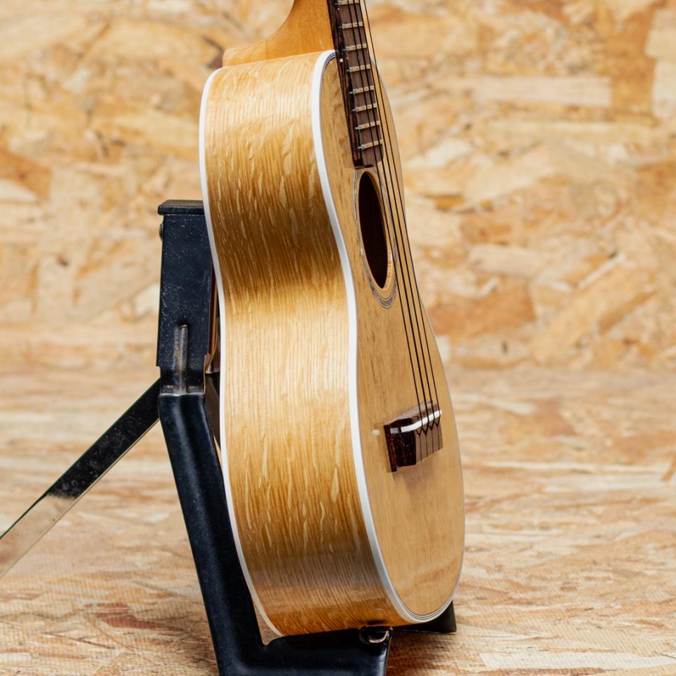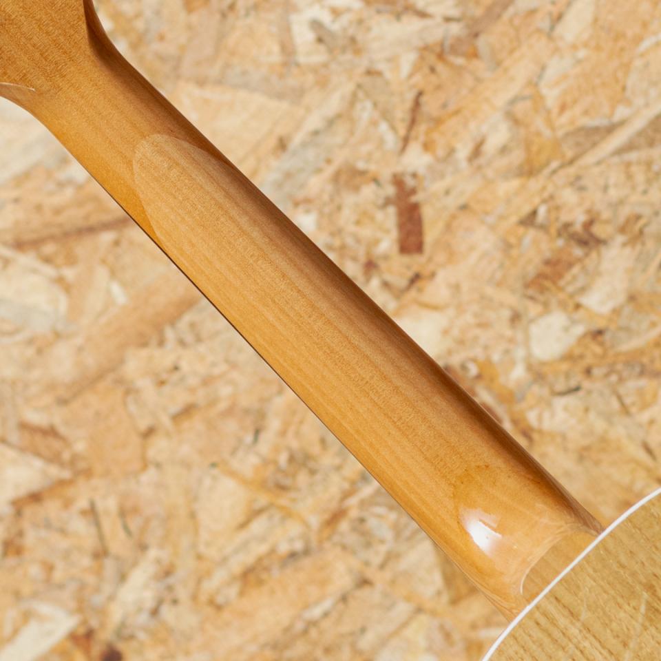 京都市の工房にて占部英明氏、息子の直宏氏によって製作されるハンドメイドウクレレ。本器は木目が特徴的なオーク材ボディのテナーサイズモデル。ホンジュラスマホガニーネック、ウェンジ指板、ローズウッドブリッジ、アバロンロゼッタ、グローバー製ギヤペグ。ウクレレ特有のやや薄めで握り易いネックシェイプ、0フレット仕様でローポジションの弾き易さは格別。14フレットジョイント仕様で演奏性も高く、テナースケールで多様なプレイにも対応可能。やや重い比重のため安定の良いサウンドで心地よいトーンを奏でます。ナチュラルカラーで自然な木材の味わいを堪能いただける1本です。