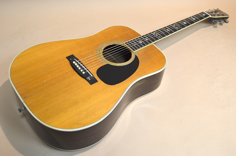 Bookmark Register for price cut notification数あるジャパン・ビンテージ・ブランドの中でもとりわけ稀少性が高く、探しているファンが絶えない伝説のブランド、マスター。マスターはお茶の水の老舗中の老舗、カワセ楽器さんのオリジナル・ブランドで、その生産は1960年代にまで遡ります。今のように大手楽器店が勃興する前の時代からカワセ楽器さんはプロ・ミュージシャンも御用達のアコギ弾きにとっては憧れのプロ・ショップでした。そんなカワセ楽器さんが、マーチンやギブソンにも負けないクオリティーの高いギターを目指し、国内で製造販売していたのがマスター・ブランドです。当時の雑誌広告など見ると、実際に多くのプロ・ミュージシャンにも愛用されていたようです。今回入荷はそんなマスター・ブランドの中でも比較的初期の頃の1974年に作られた1本。SIDE&BACKに使われたハカランダはビックリするくらい綺麗なド柾目のハカランダで、今となっては贅沢極まりないスペックの逸品です!