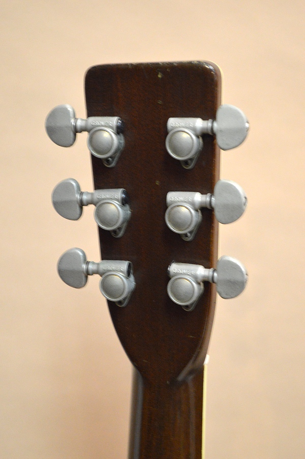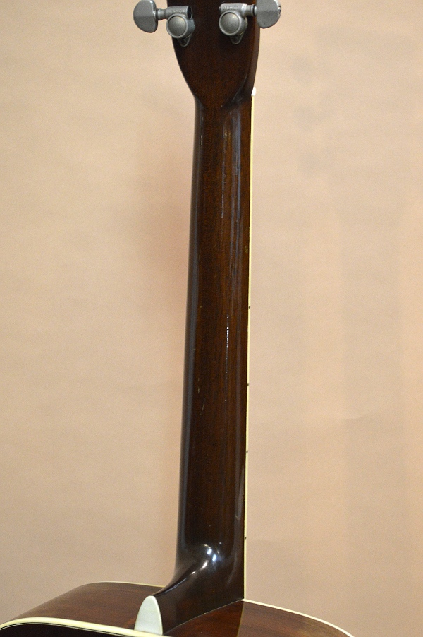ネック・コンディションも良好で概ねストレート、現状での弦高は12フレット上で6弦側2.5mm、1弦側2.0mm程度とベストなセッティングになっています。サドルにはもうほとんど余裕がありませんが、もう少しだけなら弦高も落とせそうです。フレットは全体的に減っていて、オリジナル時の6割程度の高さになっていますが、現状ビビリもありませんので、まだ当分はリフレットも必要ないかと思います。