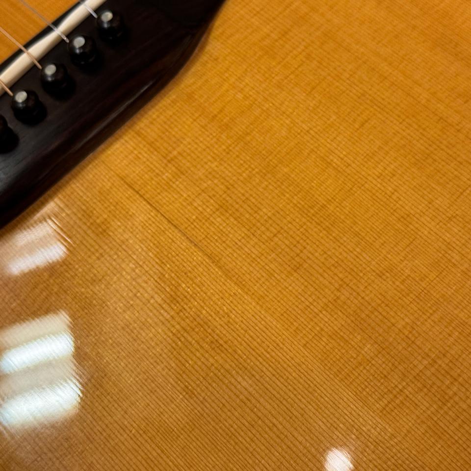 トップ材は「シトカスプルース」、サイドバック材は「インディアンローズウッド」の組み合わせで、どちらも選定された高いグレードのものを使用しています。