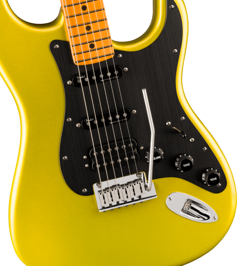 最高かつ最新の性能を求めるプレイヤーのために開発されたAmerican Ultra IIは、フェンダーの最も先進的な製品シリーズです。American Ultra IIのギターとベースは、プレミアムな素材、精巧なクラフトマンシップ、そして最先鋭のデザインを特徴としています。常に進化しながらも、長く使用できる品質を持ち、楽器の最先端を駆け抜け続ける製品をラインナップしています。 American Ultra II Stratocaster HSSは、厳選されたアルダーボディに深めのボディコンターが施されています。クォーターソーンメイプルネックはModern "D"ネックシェイプで、ネックバックは触り心地の良いUltra Satinフィニッシュで仕上げられています。10?14インチコンパウンドラジアのエボニーまたはクォーターソーンメイプル指板は、エッジを丁寧にロールオフ処理したUltraロールドエッジが採用されており、ミディアムジャンボフレット、蓄光式Luminlayサイドドット、Graph Tech TUSQナットを装備しています。テーパードネックヒールと深いボディコンターにより、ハイポジションへの容易なアクセスが可能です。 American Ultra II Stratocaster HSSは、2基のUltra II Noiseless Hot StratピックアップとHaymakerハムバッカーを装備し、甘いクリスタルのように澄み渡ったクリーンから灼熱のリードサウンドまで、ハムノイズとは無縁の極上のトーンを提供します。特許取得済みのS-1スイッチは、Haymakerをコイルスプリットし、サウンドのバリエーションをさらに広げます。ポップインアーム付き2点支持American Ultraシンクロナイズドトレモロ、ポリッシュ仕上げのステンレスブロックサドル、コールドロールドスチールブロック、デラックスロッキングチューニングマシン、ソフトタッチノブ、1-plyアノダイズドピックガードなど、高い実用性を誇る機能を搭載しています。 フェンダーの象徴的なスタイリングと先進的な仕様を融合させたAmerican Ultra IIは、プレイヤーの演奏体験を新たな高みへと導きます。プレイヤーが求める完璧なトーン、無限の汎用性、そして究極のパフォーマンスをAmerican Ultra IIが実現します。
