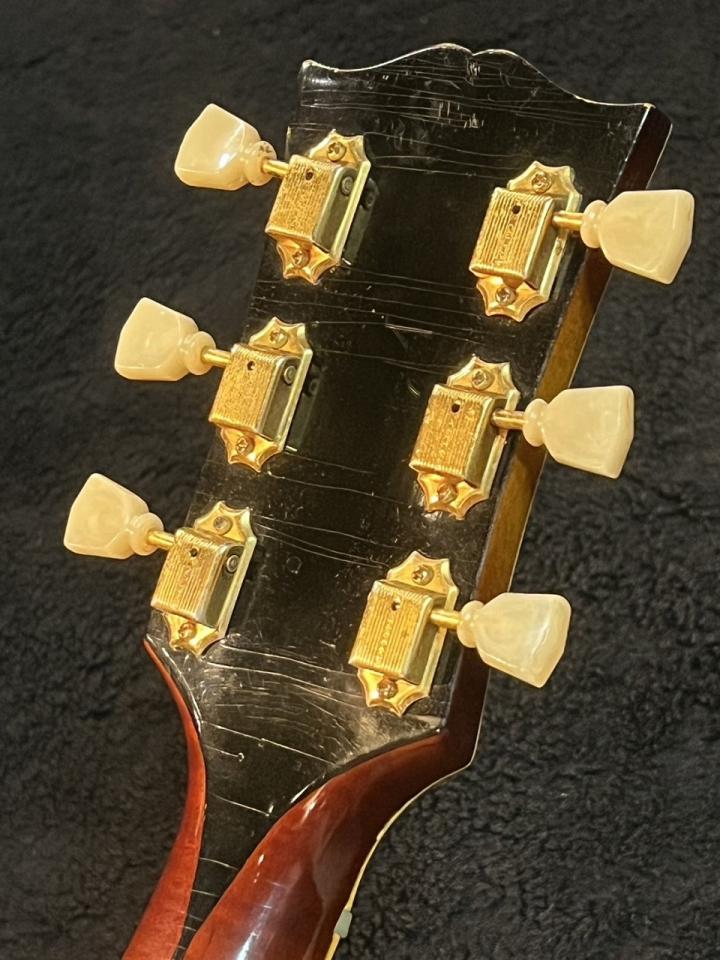 ネック裏、バックのトラ杢がとても美しく、1960年代に入るとプレーンが多い印象を受けますので、1950年代のJ-200はバックシャンが多い!見惚れてしまいます。