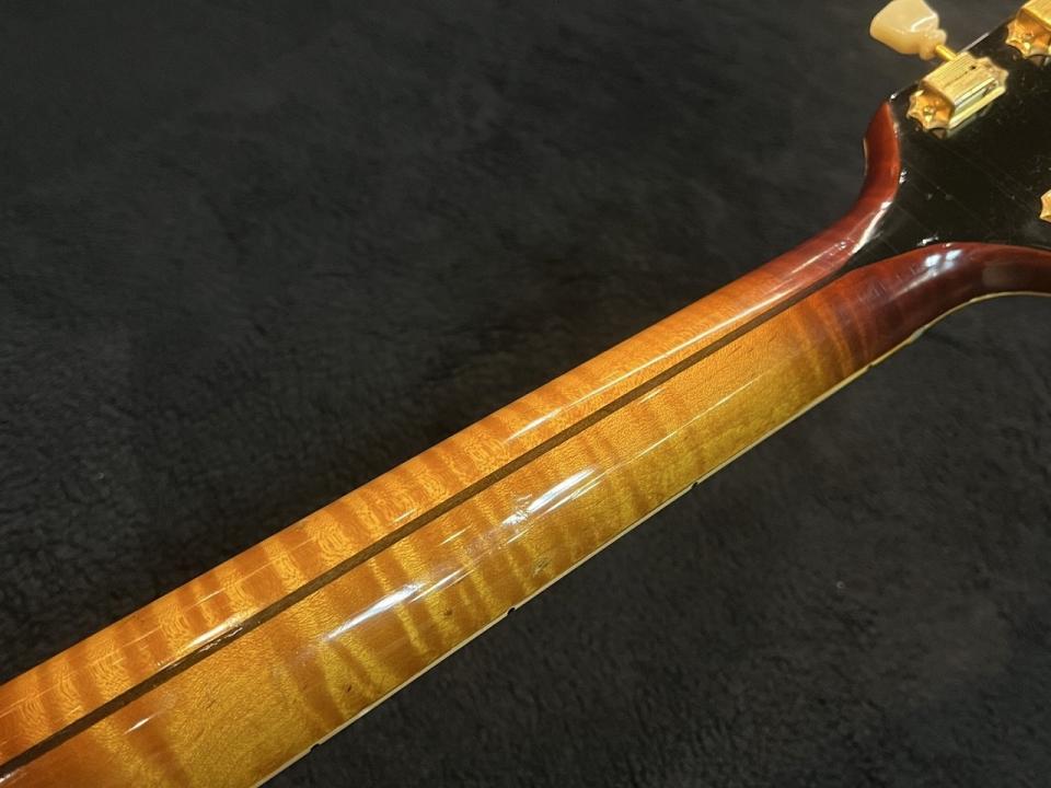 トラスロッドの残は僅かですが、ネックは現状ストレートで適正弦高にセッティングされております。5弦のペグシャフトに若干の歪みがありますが、機能的な問題はございません。