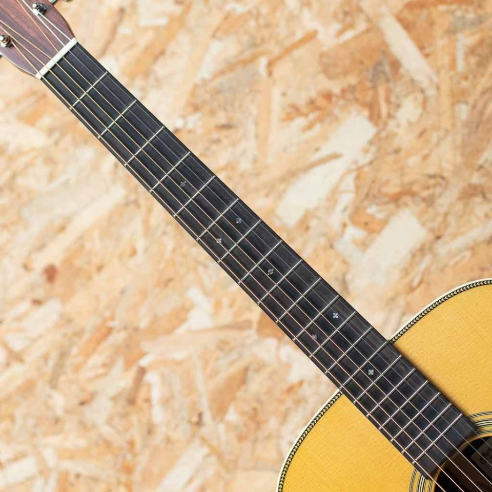 ビルボードのブルーグラスアルバムチャートで初登場1位を獲得し、輝かしい数々の賞を受賞して圧倒的な賞賛を受けるビリーストリングス。本器はビリーストリングスが所有する 1940年製のD-28にインスピレーションを得て製作されたシグネチャーモデル”D-28 Billy Strings ”。スプルーストップ、インディアンローズウッドサイド&バック、ジニュインマホガニーネック、エボニー指板&ブリッジ、Martin独自のニッケル製エンクローズドペグ、べっ甲柄セルロイドピックガード、オーセンティックデカールヘッドロゴ、アンティークトナー、ヘリンボーントリム、フォワードシフテッドスキャロップドXブレイシング。また、ビリーストリングスの卓越した演奏スタイルに合わせた25インチ(635mm)のスケールに1 23/32インチ(43.7mm)のナット幅。モディファイド・ロー・オーヴァルネックシェイプにスタンダード・テーパーが採用されており、圧倒的な速弾きと表現力をサポート。やや短くなった弦長による絶妙なテンション感も秀逸なモデルです。ボディ内にはビリーのサインとグラフィックが印刷されたカスタム・ラベルが貼られています。ブルーグラス奏者の方はもちろん、ドレッドノートの箱鳴り感と高い演奏性の両立を求める方、ぜひご検討くださいませ。