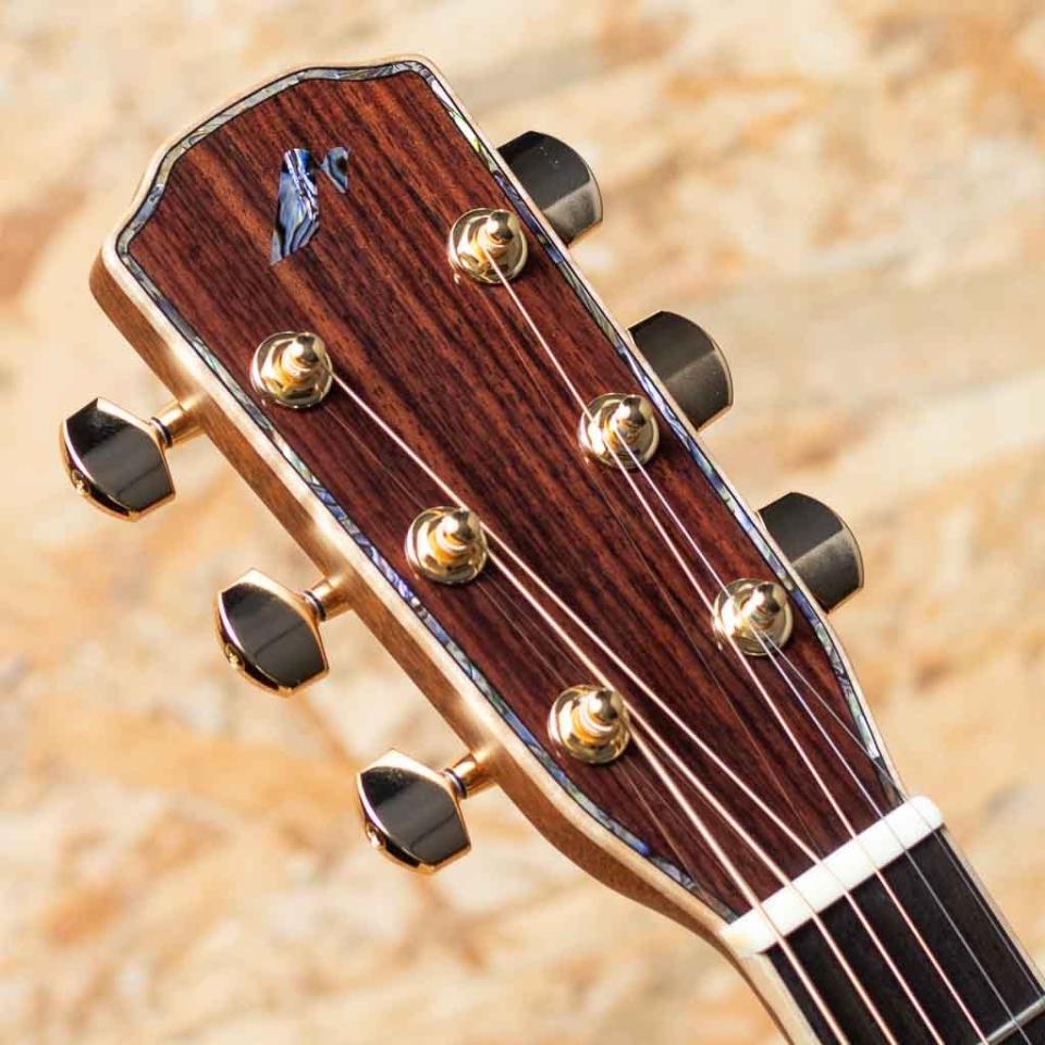 以前はフォークブームの一翼を担っていた国産ブランド”Morris”、2000年代初頭頃より大量生産から半手工品へというキャッチフレーズを掲げ、シフトチェンジ。現在ではフィンガーピッキング用ギターの顔と言えるファクトリーブランドとして長野県松本で良質なギターを生産しています。本器はHAND MADE PREMIUMにて製作された、ショップ・オリジナル・カスタム” SE-93 Custom GRB "。イングルマンスプルーストップ、マホガニーサイド&バック、ダイヤモンドボリュート付きマホガニーネック、エボニー指板&ブリッジ、ゴトーゴールドペグ、アバロンロゼッタ、メイプルバインディング、グランド・オーディトリアムボデイシェイプ、グレーバーストフィニッシュ。ボディトップとヘッドトリムにはアバロンインレイを配し、指板にはスノーフレイクスMOPポジションマークをオーダー。SEシリーズを基としたこちらのモデルはフォワードシフテッドXトップブレーシング&ラダーバックブレーシングにスタンダード・ラウンドバックの組み合わせにより、豊かでありながら柔軟なコントロールが可能。トップ材をイングルマンスプルースにアップグレードする事により、レスポンスの向上とより甘く艷やかなサウンドをお楽しみいただけます。外観の雰囲気を保ちながら、コストパフォーマンスの高い国産ハンドメイドプレミアムでの実現となる本モデル。ぜひご検討くださいませ。後付可能なブラックピックガードとオリジナルハードケースが付属します。