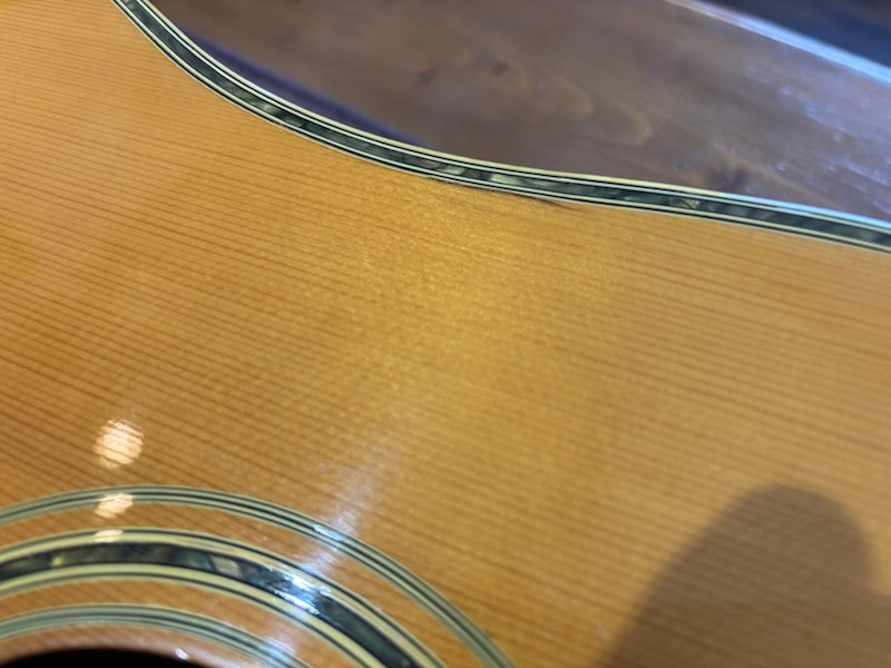 トップ板が薄く凹凸があり、極僅かですがブリッジ浮きもあります。