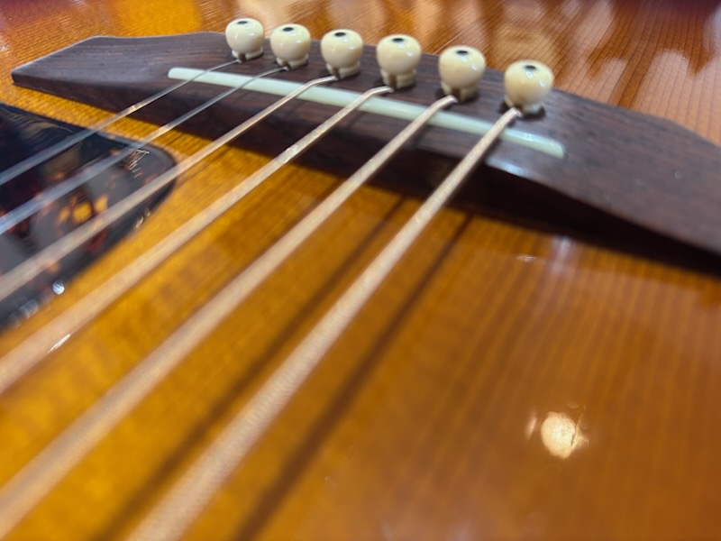 フレットとナット&サドルに関しましては、当店と提携しておりますGUITAS FACT. KAWANAKAの川中氏にてフレット浮き修正と擦り合わせを、ナットとサドルは牛骨にて作り直しておりますので、ストレス無く演奏を楽しんで頂けるかと思います。