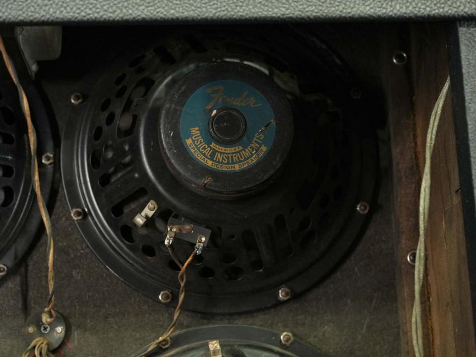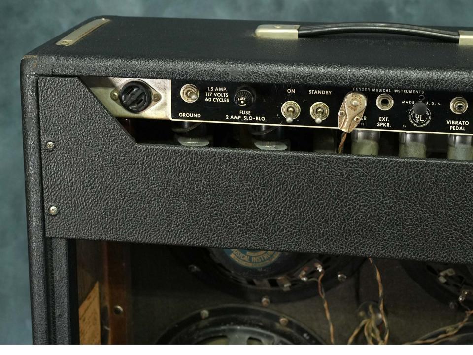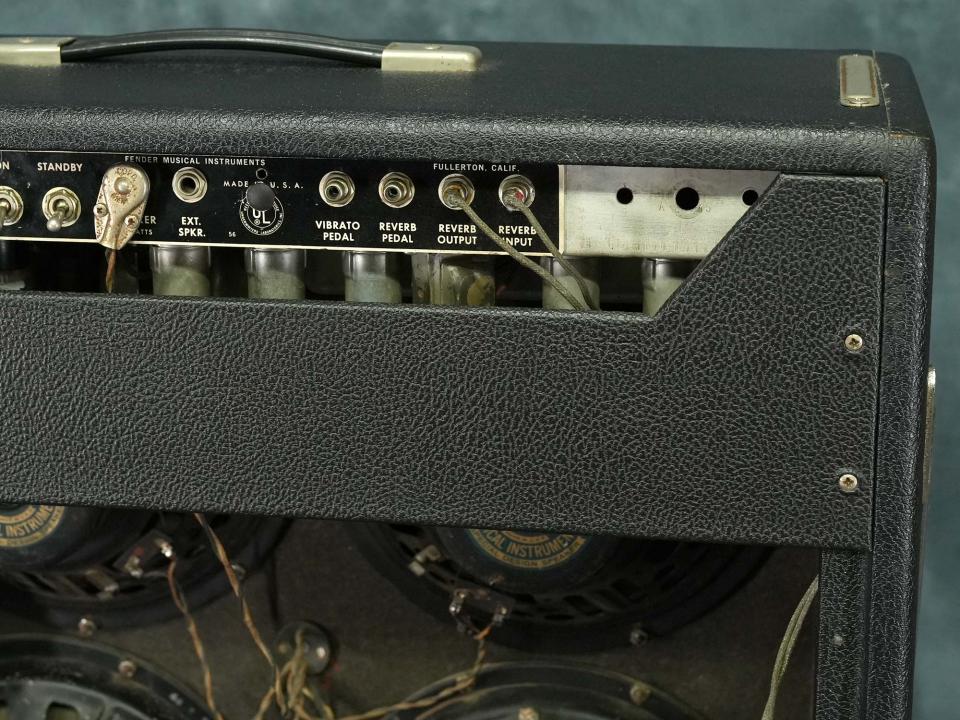 過去に何かしらの手が加えられていたようでシャーシに複数の穴が開けられていますが現在は元に戻されています。ノーマルチャンネルのトレブルコントロール・ヴィブラートチャンネルのミドルコントロールのポット交換、電源コード・リバーブユニット・複数のコンデンサの交換を含め手が加えられていますが、当店入荷前にメンテナンスも施されており現在は各コントロールや使用上の問題等は有りません。