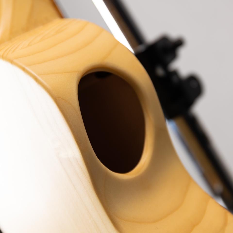 指板とブリッジには北海道産サクラ材を使用され、ほのかな赤みがあるのが特徴的です。