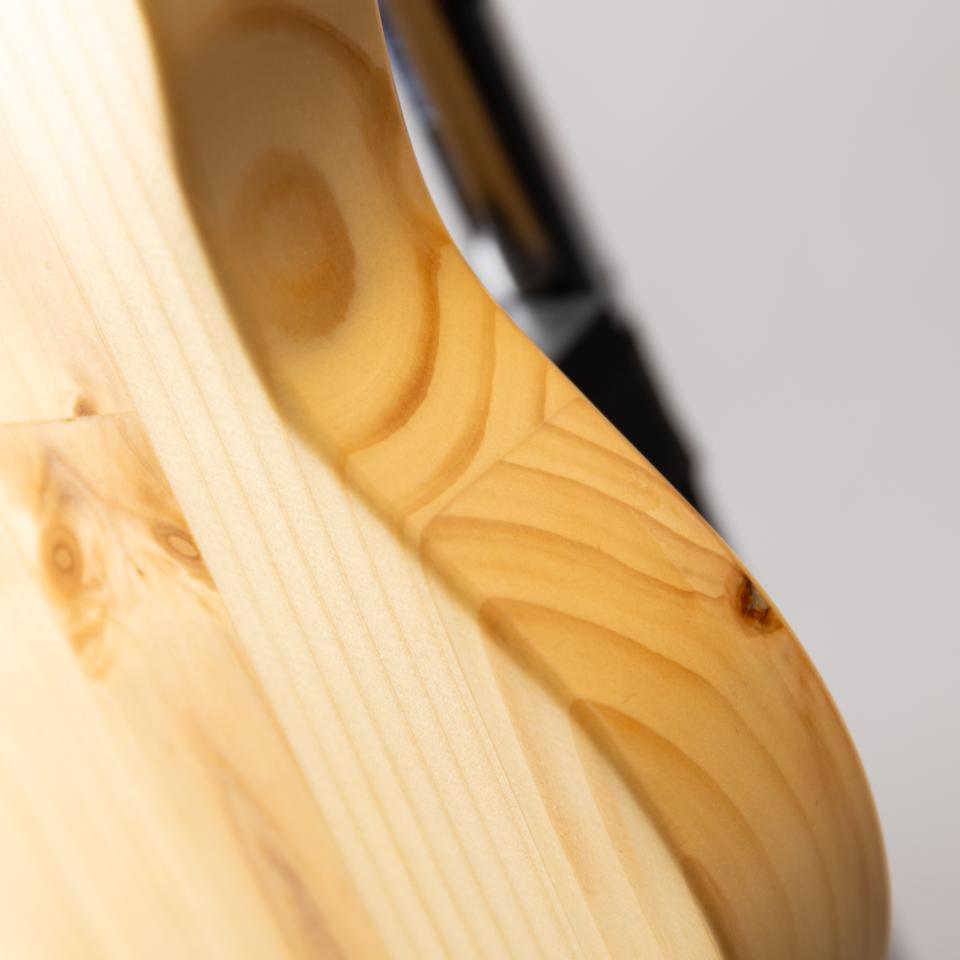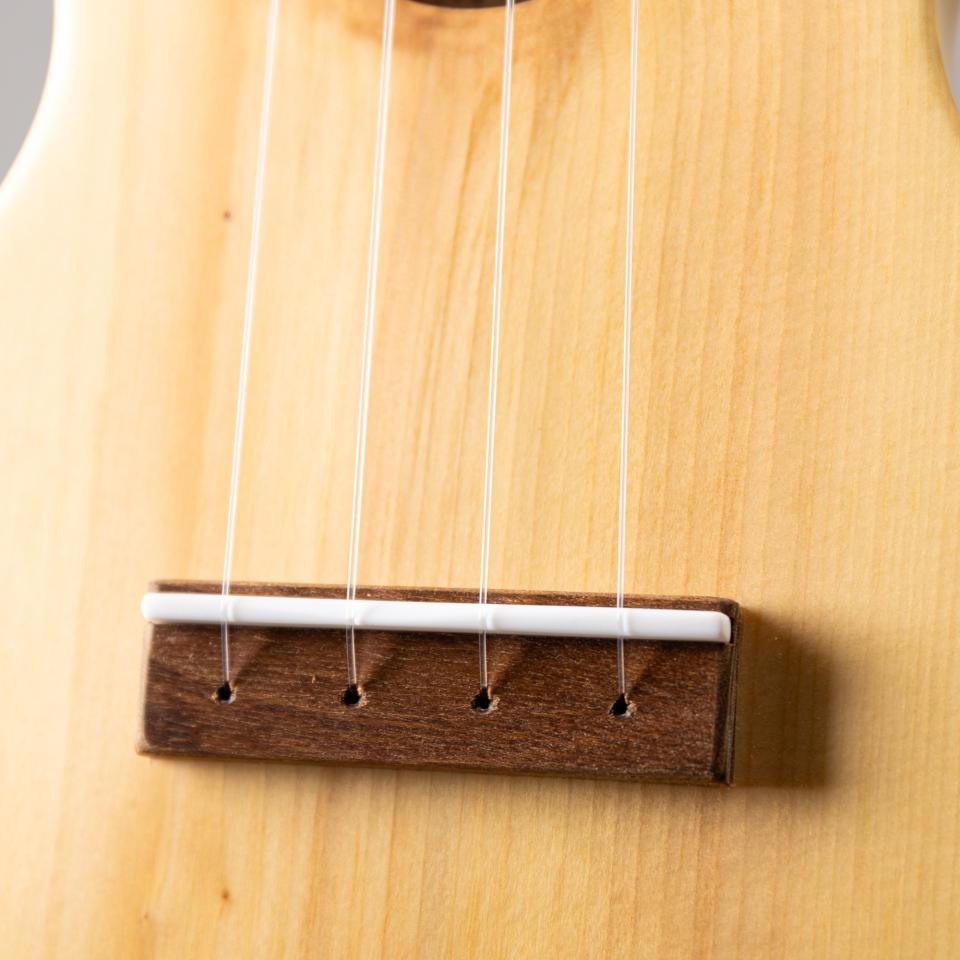 天然のエゾマツは現在では非常に希少となっているが、わずかに採取される貴重な材を仕入れ、ウクレレへと生まれ変わらせている。