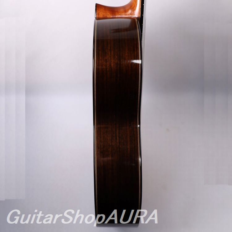 とても状態の良いUsedです。表面板の指板脇と駒板下部分にほんのわずかなきずがあるのみで、ほぼ新品同様と言えるレベルの美品。ネック、フレット、糸巻等演奏性や機能に関する部分も良好です。ネック形状は薄めのDシェイプ、指板はレイズドフィンガーボード仕様で高音側は20フレットまで設置されています。弦高値は3.0/4.0mm(1弦/6弦 12フレット)、サドル余剰は1.5mmとなっています。