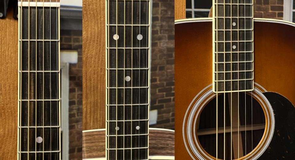 ③ やさしく面取りされた快適なエッジを備えた薄い指板。