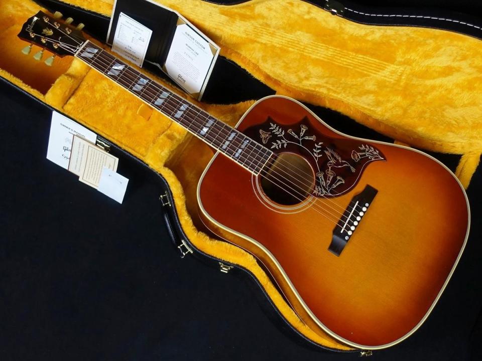 トム・マーフィーとギブソンによる長年の研究と経験、深い知識に裏打ちされた技術によって、 ギブソン・モンタナ工場内に新たに設けられたマーフィー・ラボ・アコースティックによる"Gibson Murphy Lab 1960 Hummingbird Heritage Cherry Sunburst Light Aged"です。