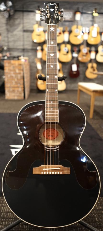 この機種ならではの独創的なルックスを持っており、エボニーブラックのボディカラーリング、エヴァリー・ブラザーズと共同でデザインされたダブルトータス・マスターシュ・ピックガード、ヘッドストックとネック上にあしらわれたマザーオブパール・スター・インレイ等、エバリー・ブラザーズ J-180だけの唯一性の高さが魅力!