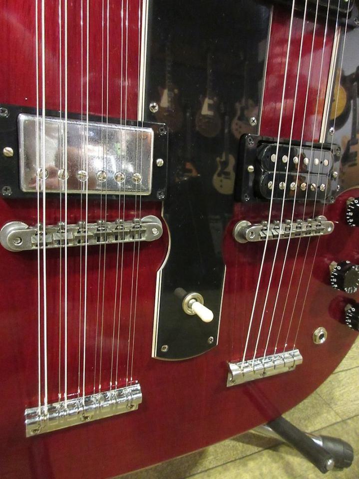Led ZeppelinのギタリストであるJimmy Pageがスタジオテイクをライブで再現する為、Gibsonにオーダーし、現在に至るまで使用を続けている世界で最も有名なダブルネックギターと言っても過言ではないチェリーレッドのEDS-1275モデル。このモデルは有名ミュージシャンの所有機としても知られており、ドン・フェルダーやジョン・マクラフリン、スティーブン・スティルスなど名だたるミュージシャンが使用していました。Jimmy Pageの所有機は1969年製で、12弦と6弦のペアになっており、ライブにおいて、「The Song Remains The Same」「The Rain Song」「Stairway To Heaven」などの曲を演奏する際に使用されました。黒または白のドラゴンスーツを着たJimmy Pageがこのギターをプレイする姿に憧れた方も多い事でしょう!最近では2023年のロックの殿堂入り式典でリンク・レイの「Rumble」を演奏したのも記憶に新しいところ。本機はGibson Custom Shopが2007年に本人所有機のディティールを検証し、世界限定250本のみ販売されたうちの1本!使用感も少なく非常にコンディションの良いコレクタブルな個体で、この時期ならではの良質なウッドマテリアルも魅力的です♪今後ますます入手困難となるのであろう希少な1本をお見逃しなく!W-Neckとしては軽量な5.41kg。認定書類等の付属品、カスタムショップ製オリジナルハードケース付属。