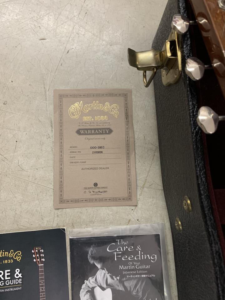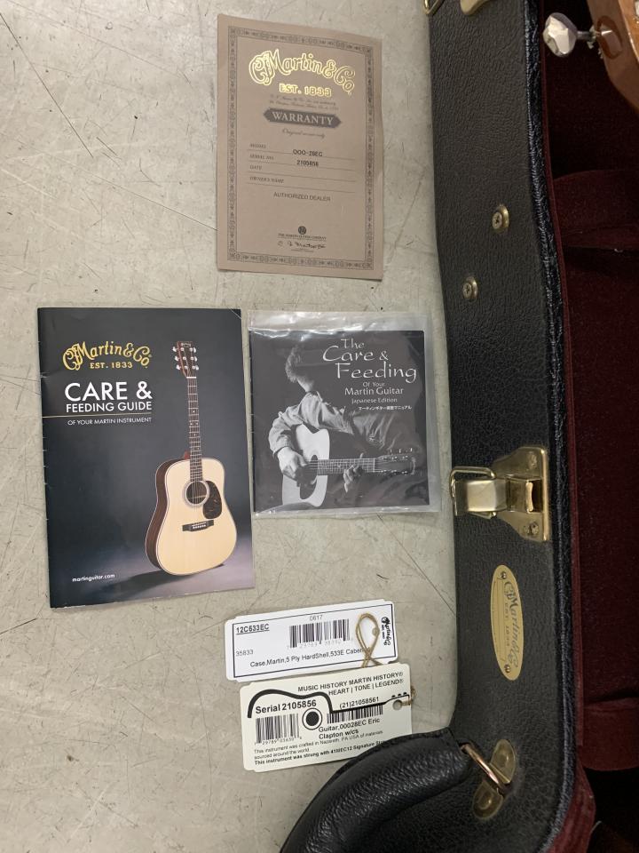 近年 値上がり傾向の 000-28EC Eric Clapton Signature Model です。写真のオリジナルハードケース、品質証明書、取り説などが付属します。